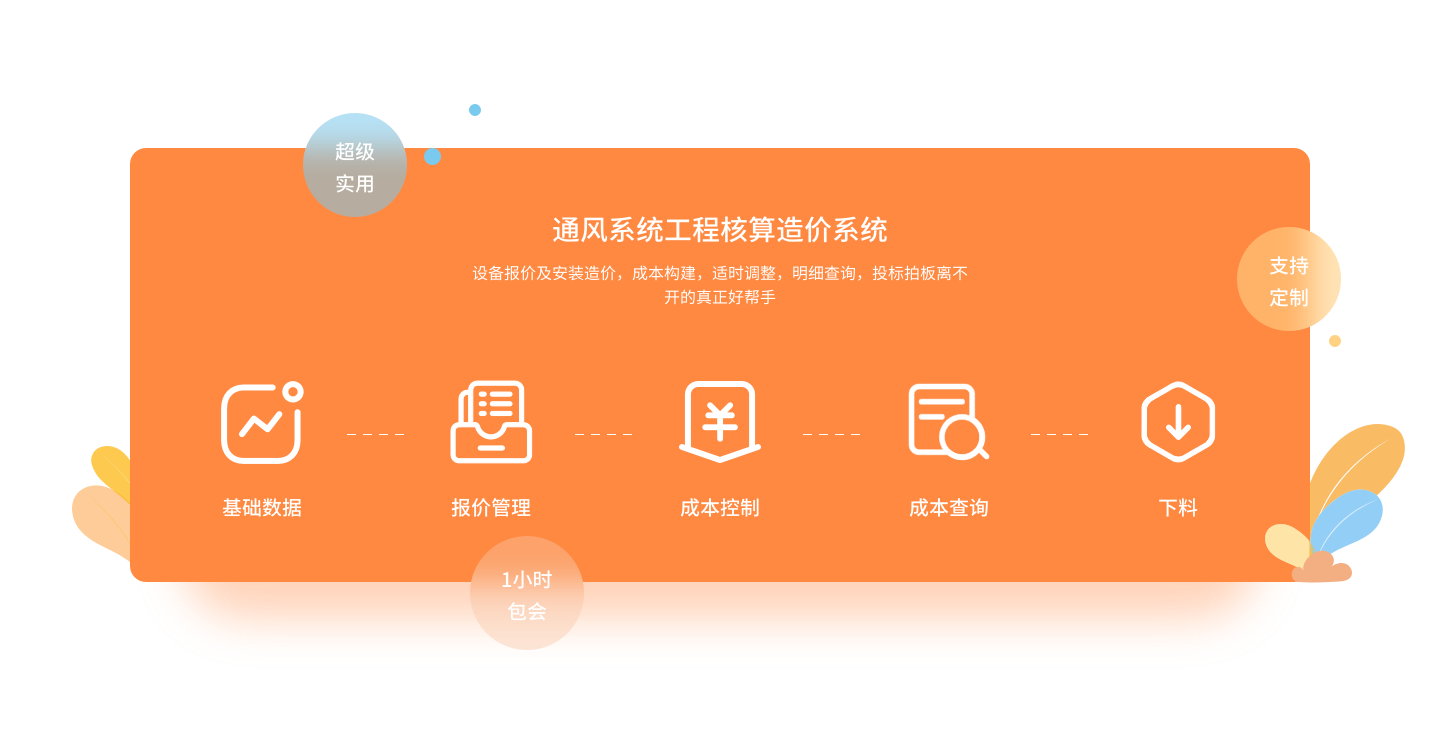 包括風機閥風口簡易報價、風機閥風口成本核算報價、通風管道安裝成本核算報價、風口噴塑計算報價、盤管柜機成本核算報價、組合式空調機組核算報價、表冷器成本核算報價等軟件。